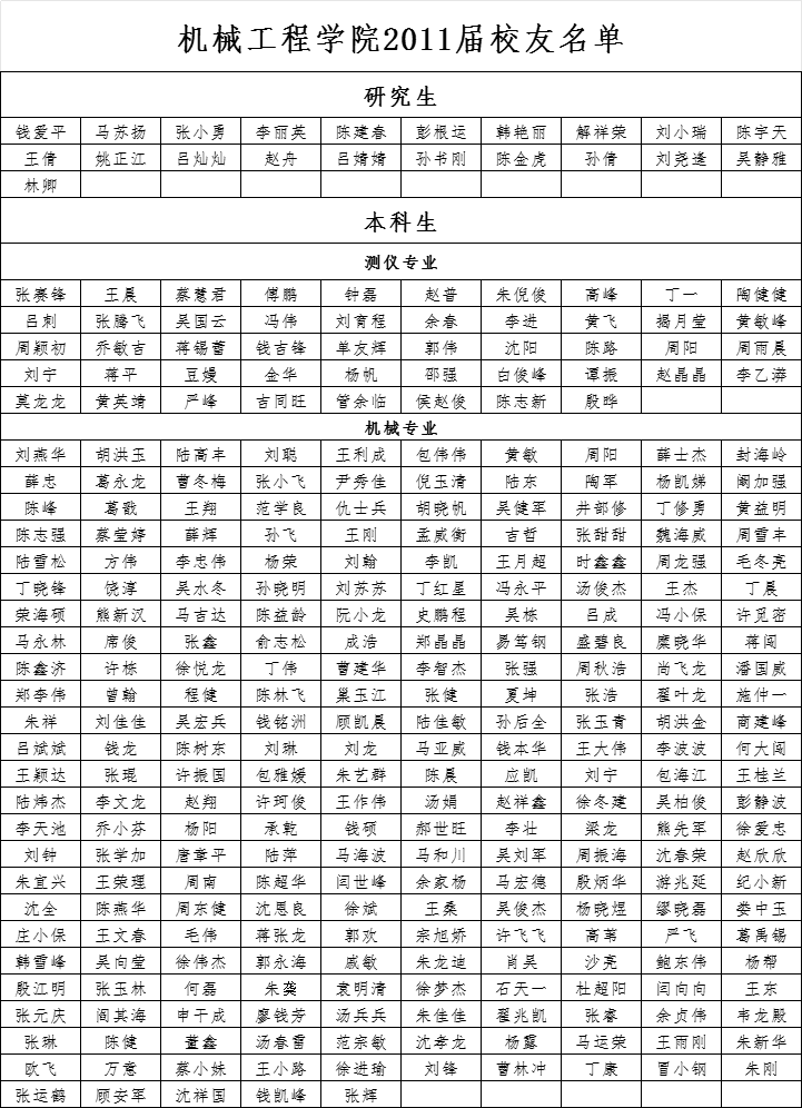 威尼斯7798cc2011届校友名单